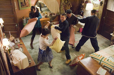 It may sound cheap to call Nothing Like the Holidays "a Puerto Rican The Family Stone", but it's really a compliment. Like that under appreciated 2006 Christmas film, Nothing Like the Holidays mixes bits of class awareness, politics, and religion into a conventional structure without letting any subject dominate for too long. Yes, audiences might scoff at the film's predictability, but in doing so they will be ignoring the fresh perspectives of Mexican director Alfredo De Villa and his mostly Latino cast. Like the work of Tyler Perry, De Villa's film drops you deeper into a setting that is usually only depicted in Hollywood from the surface out.The Rodriguez children are grown and have left their Chicago home for three hubs of international relevance: Roxanna (Vanessa Ferlito) lives in L.A., Mauricio (John Leguizamo) is in New York, and Jesse (Freddy Rodriguez) is serving in Iraq. All return to their parent's house for Christmas. Early reviews of Nothing Like The Holidays have patted it on the back for being a Christmas film with Puerto Rican characters. But again, that kind of passer-by approval is missing the larger significance. Reaching across social strata, the Rodriguez family represents various levels of the immigrant experience.